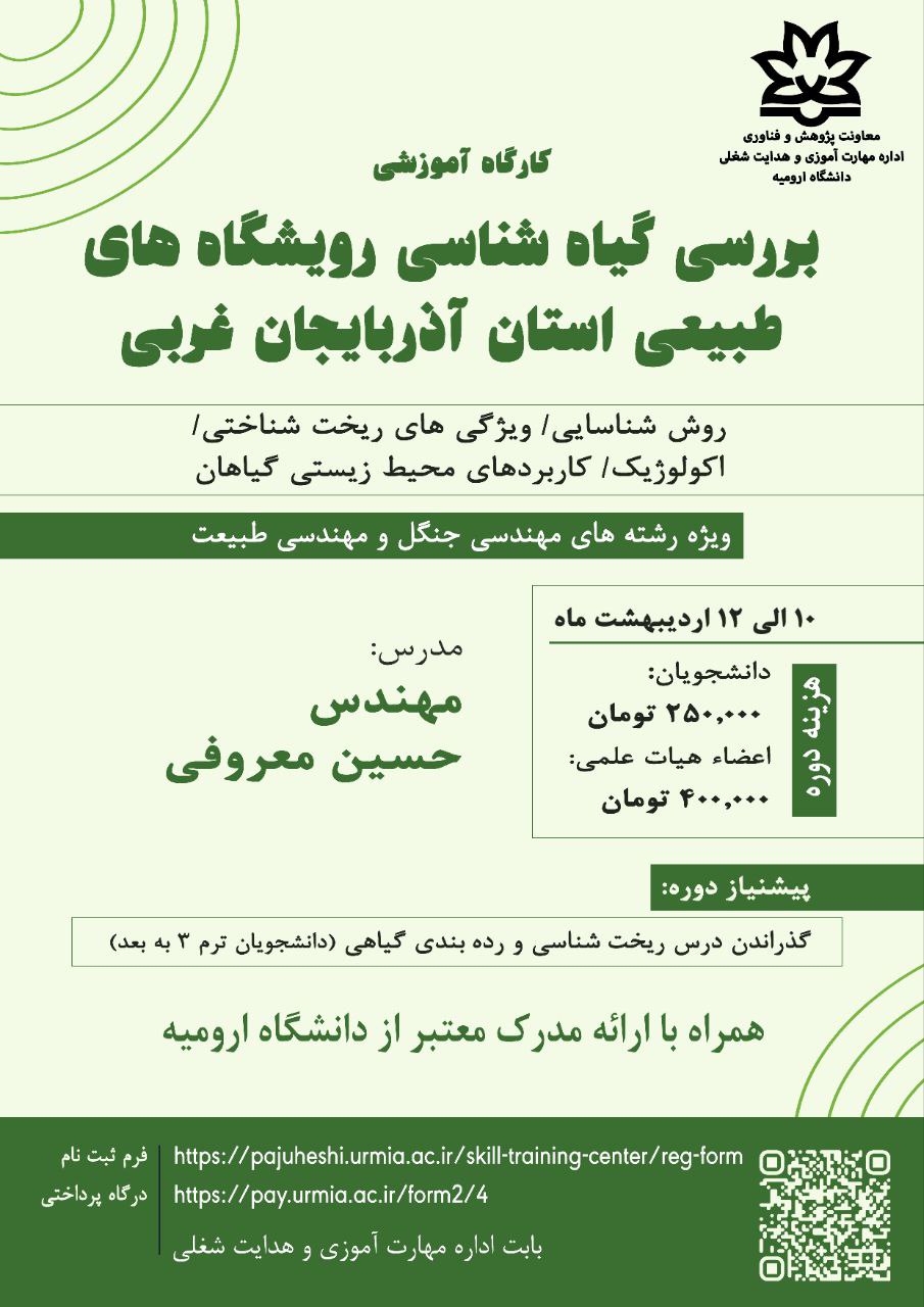 بررسی گیاه شناسی رویشگاه های طبیعی استان آذربایجان غربی Submitted by m.shahbaz on س, 02/16/1404 - 10:04نوع محتوا: دورهها